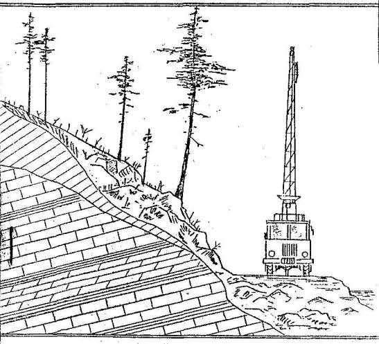 a - угол поверхности осыпи, j - угол естественного откоса материала, слагающего осыпь. Чем меньше K, тем устойчивее осыпь. По степени устойчивости осыпи разделяются на: I тип - подвижные неустойчивые «живые» осыпи с рыхлым сложением интенсивно поступающего материала и большим уклоном поверхности. Коэффициент подвижности (K) равен единице или более единицы. Признаков затухания нет. II тип - Слабо подвижные, малоустойчивые осыпи с рыхлым или слабо уплотненным сложением материала. Питание слабое. Коэффициент подвижности от 0,5 до 1,0. III тип - Неподвижные, относительно устойчивые осыпи с плотным сложением материала, небольшим уклоном поверхности и наличием на ней растительности Коэффициент подвижности (K) - менее 0,5. Поступление нового материала не наблюдается. По преобладающему составу обломков осыпи разделяются на: а) крупнообломочные глыбовые осыпи, состоящие в основном из массивных кристаллических пород с преобладающим размером обломков более 100 мм. Средним угол естественного откоса - 37°; б) среднеобломочные щебеночные осыпи, состояние из обломков изверженных и прочных осадочных пород с преобладающим размером обломков 20 - 100 мм. Средний угол естественного откоса - 35°; в) мелкообломочные щебеночные осыпи, состоящие в основном из обломков размером 20 - 2 мм (сильно выветрелые прочные породы) j, в среднем, ~ 32°; г) разнообломочные осыпи, состоящие из плитчатых или пластинчатых обломков с гладкой поверхностью. Средняя величина j - 30°. 5.61. При инженерно-геологическом обследовании должно быть установлено: границы распространения осыпи, ее мощность с выделением рыхлой подвижном части, формы залегания осыпи (по основанию и контакту прислонения), петрографический состав и гранулометрический состав осыпного материала, петрографический состав и состояние горных пород, слагающих район питания и переноса, стадия развития склона, питающего осыпь. Инженерно-геологическое обследование осыпи заключается в инженерно-геологической съемке участка осыпи в масштабе 1:1000, 1:2000 с применением горно-буровых и геофизических работ. Съемкой охватывается площадь распространения осыпи, район ее питания и переноса, прилегающая к нему водосборная площадь, а также полоса шириной по 50 метров, прилегающая к подошве осыпей. Мощность осыпи и ее устойчивость определяются геофизическими методами разведки, которые являются основными. Горно-буровые работы имеют контрольное значение и назначаются для установления геофизических параметров и отбора проб грунта на анализ и лабораторные испытания. При крупноблочном материале применяется микросейсморазведка, при более мелком материале, кроме того, успешно может быть применено электрозондирование. Геофизические поперечники обычно располагаются через 50 - 100 метров в зависимости от протяжения осыпи, но не менее трех поперечников на объект. Поперечники закладываются нормально к осыпному склону. Контрольные шурфы или скважины задаются на характерных участках осыпи на 1 - 2-х поперечниках на объект протяжением до 150 - 200 метров. При большем протяжении осыпи разведочные поперечники располагаются через 200 - 300 м. Количество выработок и точек зондирования на поперечнике не должно быть менее 3-х. Разведку предпочтительнее производить шурфами. При обнаружении грунтовых вод в теле осыпи количество выработок увеличивается для окон