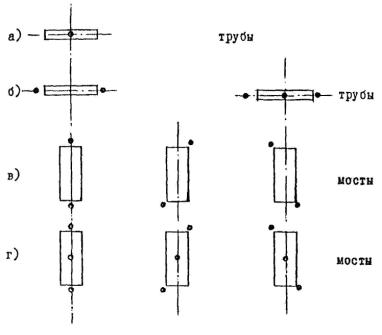 Рис. 1. Мощность рыхлых отложений и их однородность может устанавливаться в этом случае геофизическими методами. Во всех случаях, кроме самых простых условий, буровые скважины следует закладывать за пределами будущего контура опор сооружения, во избежание осложнений при строительстве, связанных с необходимостью заглушения напорных вод, вскрытых выработками. 6.4. Из буровых скважин и шурфов, проходимых при обследовании малых искусственных сооружений, должны быть отобраны образцы грунтов для следующих видов лабораторных анализов: а) для глинистых грунтов - пластичность, естественная влажность, пористость. В случае проектирования в месте устройства сооружения насыпи высотой более 12 метров, кроме того, определяются угол внутреннего трения, сцепления и компрессионные свойства. Для макропористых грунтов определяется степень просадочности; б) для песчаных грунтов гранулометрический состав и коэффициент фильтрации (для пород, залегающих ниже уровня грунтовых вод в пределах верхних 2-х метров). Образцы грунтов для лабораторных испытаний отбираются с глубин 1,0 м и глубже. При этом отбор образцов для определения пластичности производится из каждой литологической разности пород при мощности слоя не менее 0,5 м, а образцы для определения естественной влажности отбираются через каждые 0,5 - 0,6 м. Образцы с ненарушенной структурой при тугопластичной, полутвердой и твердой консистенции при однотипном характере грунтово-геологических условий могут отбираться из одной характерной выработки для двух-трех сооружений. При наличии слабых мягкопластичных и текучепластичных грунтов рекомендуется производить испытания их в условиях естественного залегания приборами вращательного среза и статическим зондированием. Для получения непосредственно в поле показателей консистенции грунтов следует применять микропенетрацию. Образцы из верхних слоев грунта (с глубины 0 - 1,0 м) отбираются для расчета размыва в местах, где проектируются мосты. Для песчаных грунтов определяется в этом случае гранулометрический состав, а для глинистых - пористость и сцепление. Пробы воды для лабораторного определения агрессивности по отношению к бетону отбираются из русел водотоков, а также из водоносных горизонтов, находящихся в зоне воздействия их на сооружения. При однотипных гидрогеологических условиях и однообразном почвенном покрове пробы могут отбираться по характерным участкам из расчета одна проба на 3 - 4 сооружения. 6.5. Камеральная обработка материалов инженерно-геологического обследования мест устройства малых искусственных сооружений в случае, когда обследование ограничивается заложением одной выработки, сводится к составлению геологической колонки с учетом данных произведенных лабораторных анализов и испытаний грунтов. Рекомендуемые масштабы колонок 1:100, 1:200 и 1:50 (в зависимости от глубины выработки и толщины слоев). Если обследование места устройства малого искусственного сооружения произведено двумя или более скважинами или с применением геофизических методов исследования в нескольких точках, то по сооружению составляется инженерно-геологический паспорт, включающий в себя: 1. План инженерно-геологической съемки с нанесением выработок, точек ВЭЗ и таблицей привязки выработок к трассе. 2. Геолого-литологический разрез с нанесением ге