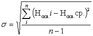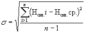 Исходные данные в результате расчета величин Нскв.ср. и s приведены в следующей таблице: