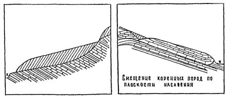 ОПОЛЗНИ II ТИПА в) Консистентный оползень покровных накоплений г) Скалывающий оползень коренных пород