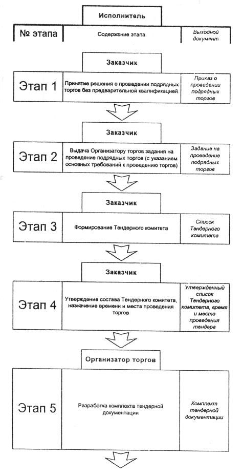 Подписано в печать 05.04.96 г. Формат бумаги 60x84 1/16. Печать плоская. Уч.-изд.л. 7,3. Печ.л. 8,25. Тираж 3000 экз. Изд. № 7312. Зак. 43 Адрес Информавтодора: 113035, Москва, Софийская наб., 34 "Г" Ротапринт Информавтодора: Москва, Зеленодольская, 3 СОДЕРЖАНИЕ 1. ОБЩИЕ ПОЛОЖЕНИЯ1.1. Настоящее положение разработано в соответствии с Гражданским Кодексом РФ, Законом РСФСР "Об инвестиционной деятельности в РСФСР", Законом Российской Федерации "О поставках продукции и товаров для государственных нужд", распоряжением Государственного комитета РФ по управлению государственным имуществом и Государственного комитета РФ по вопросам архитектуры и строительства от 13.04.93 № 660-р/18-7 "Об утверждении Положения о подрядных торгах в Российской Федерации", Постановлением Совета Министров РФ "O6 утверждении Основных положений порядка заключения и исполнения государственных договоров на строительство объектов для федеральной государственных нужд в Российской Федерации" от 14.08.93 № 812, распоряжением Министерства строительства РФ и Государственного комитета РФ по управлению государственным имуществом № 18-23р/2532-р от 18.10.94 "О внесении изменений и дополнений в Положение о подрядных торгах в Российской Федерации". 1.2. Настоящее Положение определяет порядок подготовки, организации и проведения подрядных торгов на выполнение дорожно-строительных работ и услуг, осуществляемых по заказу Федерального дорожного департамента, дирекций автомобильных дорог, территориальных органов управления автомобильными дорогами и других юридических лиц, наделенных Федеральным дорожным департаментом правами Заказчика. 1.3. Подрядные торги - форма размещения на многовариантной основе заказов на выполнение работ и услуг на основе конкурса с целью наиболее эффективного использования средств Заказчика и обеспечения максимально возможного учета требований Заказчика к выполнению работ (сроки, качество, этапность и т.д.). 1.4. Размещение заказов, финансируемых из Федерального дорожного фонда, в обязательном порядке производится на основе подрядных торгов в соответствии с настоящим Положением. В остальных случаях решение о проведении или непроведении подрядных торгов принимается Заказчиком - Федеральной дирекцией, территориальным органом управления автомобильными дорогами или другим органом, наделенным правами Заказчика, в соответствии с Положением, разработанным Федеральным дорожным департаментом или Положением Федеральных дорожных органов. 1.5. Основные термины, используемые в настоящем Положении, приведены в Приложении 1. 1.6. Решение о проведении торгов и их условиях принимается Заказчиком в соответствии с настоящим Положением. 1.7. Торги осуществляются Организатором торгов под руководством Председателя (заместителя Председателя) Тендерного комитета. 1.8. Торги могут быть: открытыми или закрытыми, с предварительной или без предварительной квалификации Претендентов, первичные или повторные. 1.8.1. Открытые и закрытые торги Открытые торги - торги, предусматривающие участие любых организаций, подавших заявку на участие в них и отвечающих требованиям п. 1.11. Оповещение об открытых торгах осуществляется в соответствии с п.З. Закрытые торги - торги, к участию в которых допускаются только организации, специально приглашенные для этой цели, в соответствии со списком, утвержденным Заказчиком. 1.8.2. 