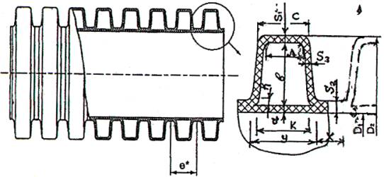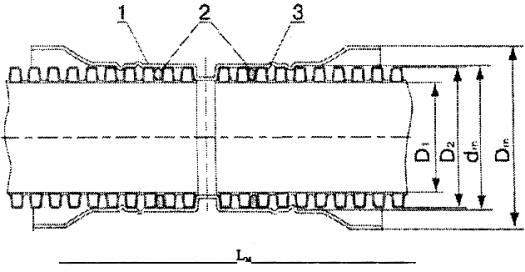 Рис.1. Схема полиэтиленовой трубы с двухслойной стенкой(гофрированной наружной и гладкой внутренней) диаметром 100 м