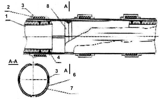 Рис.7 Схема ремонта каналов связи из ПГТ 1 – труба гофрированная полиэтиленовая, 2 – хомут (червячный), 3,5 – мастика, герметизирующая МГ 14 или аналог, 4 – мастика, герметизирующая 2900 или аналог, 7 – полуцилиндр внутренний (полиэтиленовый), 8 - полувкладыш Приложение АОсновные характеристики ПГТ