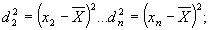 -отклонение d от среднего арифметического для каждого определения по формуле