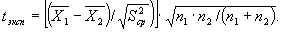 проводится сравнение двух средних с помощью t -критериев ( - для каждой значимой точки определяется усредненная дисперсия по формуле