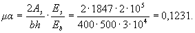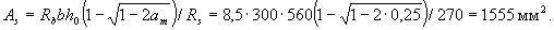 Так как am = 0,173 < ar = 0,39 (см. табл. 3.2), необходимую площадь растянутой арматуры определяем по формуле (3.26)