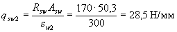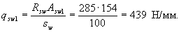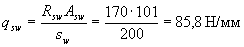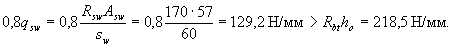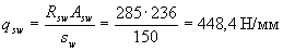 Значение Qb принимают не более 2,5Rbtbho и не менее 0,5Rbtbho. Значение с определяют согласно п.3.32. Усилие Qsw определяют по формуле Qsw = 0,75 qsw co, (3.47) где qsw - усилие в хомутах на единицу длины элемента, равное