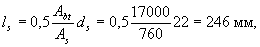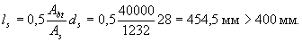 этого вычислим высоту растянутой зоны бетона по формуле (4.23), принимая к = 0,90, а Принимаем у = 100 мм и тогда площадь сечения растянутого бетона равна Аbt = уb = 100·400 = 40000 мм2 a Принимаем ls = 400 м.