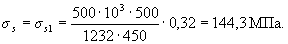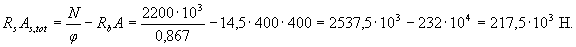 Условие (3.40) не соблюдается. Расчет повторим, заменяя в формуле (3.37) значение Rs для наименее растянутого стержня напряжением σS определенным по формуле (3.41), и корректируя значения ho и bо.