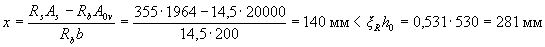 где Правую часть условия (3.18) при необходимости можно несколько увеличить путем замены значения aR на (0,7 aR + 0,3 am), где am = ξ(1 - 0,5 ξ), и принимая здесь ξ не более 1. Если х ≤ 0, прочность проверяют из условия M ≤ RsAs (h0-a') (3.19)