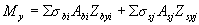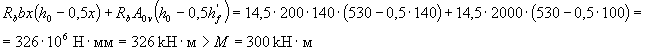 Rb[Aweb(h0-х1/3) + Sov,x] = 14,5[11588(359,8-173,1/3)+212,5·104] = 81,57·106 Н·мм > Mx = 80,1·106 Н·мм т.е. прочность сечения обеспечена. Пример 11. По данным примера 10 необходимо подобрать площадь растянутой арматуры при моменте в вертикальной плоскости M = 64кНм. Расчет. Составляющие изгибающего момента в плоскости осей у и х равны: