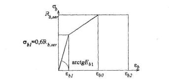 Черт.4.8.Трехлинейная диаграмма состояния сжатого бетона Кривизна на основе нелинейной деформационной модели определяется с помощью компьютерных программ. При расчете статически неопределимых