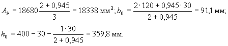 Аналогично определим значения Sov,y, Sov,x, Aweb и x1: Sov,y = 6750· (91,1 + 75/2) = 86,8·104 мм3; Sov,x = 6750· (359,8 - 90/2) = 212,5·104 мм3; Aweb = 18338 - 6750 = 11588 мм2;
