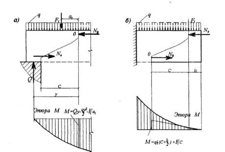 Черт.4.6. Эпюры изгибающих моментов и кривизны в железобетонном элементе постоянного сечения а - схема расположения нагрузки; б - эпюра моментов; в - эпюра кривизны В этом случае для свободно опертых и консольных элементов максимальный прогиб определяют по формуле