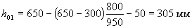 и тогда Определяем высоту сжатой зоны по формуле (4.44), принимая усредненную ширину ребра 85 мм и площадь сжатых свесов равную Асв = (b'f - b)h'f = 635·30 = 19050 мм2, и рабочую высоту ho = 300 - 31 = 269 мм: