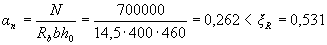 Если aт < ar (см. табл. 3.2), сжатая арматура по расчету не требуется. При отсутствии сжатой арматуры площадь сечения растянутой арматуры определяется по формуле
