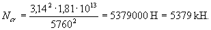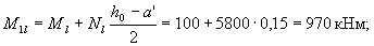 Расчетное сопротивление бетона Rb согласно п. 2.8 принимаем с учетом коэффициентов γb2 = 0,9 и γb3 = 0,9, а учитывая наличие кратковременных нагрузок, принимаем γb1 = 1,0. Тогда Rb = 8,5·0,9·0,9 = 6,89 МПа. Проверим условие (3.1), используя формулу (3.2) RbAb = Rbbh(1 – 2·e0·η/h) = 6,89·1000·150(1 - 2·0,067·4,797) = 784635 Н = 784,6кН > N=700 кН, т.е. прочность панели на действие полной нагрузки обеспечена. Поскольку Nl/N = 0,93 > 0,9, согласно п.3.3 проверим прочность панели на действии только постоянных и длительных нагрузок, т.е. при N = 650 кН. В этом случае φl = 2, и тогда