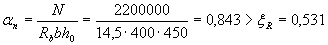 Если aт > ar , требуется увеличить сечение или повысить класс бетона, или установить сжатую арматуру согласно п.3.22. 3.22. Площади сечения растянутой As и сжатой A's арматуры, соответствующие минимуму их суммы, если по расчету требуется сжатая арматура (см. п.3.21), определяют по формулам: