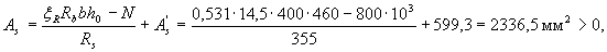 где ξR и ar см. табл. 3.2 Если значение принятой площади сечения сжатой арматуры As значительно превышает значение, вычисленное по формуле (3.24), площадь сечения растянутой арматуры можно несколько уменьшить по сравнению с вычисленной по формуле (3.25), используя формулу
