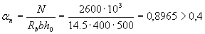 т.е. сжатая арматура действительно по расчету не требуется. Площадь сечения растянутой арматуры вычисляем по формуле (3.22)