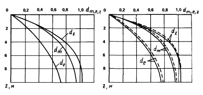 при застройке территории; Графики для определения коэффициентов аm,e,z построены для грунтов