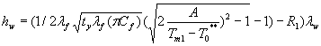 где m - параметр, равный 1 м. При hs ≤lB/3 толщина подсыпки hs принимается равной h’s; при h’s >lB/3 значение hs определяется по формуле (17), в которой h’s вычисляется по формуле (18) при к = 1,62. При залегании в основании сильнольдистых грунтов (ii ≥ 0,4) расстояние от верхнего расчетного горизонта мерзлоты до кровли этих грунтов должно быть не менее 0,5 м. 8.13. Расчет подсыпки по схеме III производится с целью определения толщины теплоизоляции hw, под которой протаивание будет ограничено заданной величиной h’. где где Q и Lv1 - величины, вычисляемые по формулам (6) и (7) соответственно для характеристик материала подсыпки и природного грунта деятельного слоя с заменой в этих формулах Т1 на Т2, t1 на t2 и Т0 на T0* вычисляемые по формулам (22), (23) и (24). Таблица 10