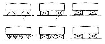 каркасных зданий (a - г) 1.11. Для уменьшения усилий в фундаментах зданий с холодным подпольем, вызываемых температурно-влажностными воздействиями связанных с ними фундаментных балок, рекомендуется предусматривать возможность перемещения концов балок в горизонтальном направлении, за исключением случаев, когда к балкам крепятся связи. С этой целью отверстия для крепежных болтов в балках делаются овальными (либо вообще исключаются болтовые соединения) и опирание балок на фундаменты производится через антифрикционные прокладки с обеспечением восприятия фундаментами горизонтальных нагрузок (ветровых и т.п.). Узлы опирания балок и ростверков на фундаменты при холодных подпольях рекомендуется устраивать шарнирными (см. рис. 9-12).