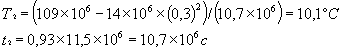 расчетные значения температуры (°С) и времени (с), принимаемые по рекомендациям