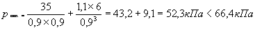 подошвы b = l = 0,9 м; R = В соответствии с рекомендациями п. 9.4 при эксцентриситете вертикальной нагрузки е= M/N = 1,1/35 = 0,031 м>1/30 = 0,9/30 = 0,03 м размеры подошвы должны определяться из условия (32), т.е. ограничения краевого давления рmax величиной 1,2R/0,9 = 66,4 кПа. По формуле (34) получаем