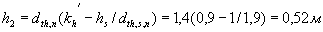 (59) под 13. ПРИМЕРЫ РАСЧЕТАПример 1. Требуется определить толщину подсыпки под сборно-разборное каркасное здание, обеспечивающую на поверхности природных глинистых грунтов максимальную температуру Тm1 = -0,2°С. Здание с холодным подпольем возводится в пос. Амдерма, отмостки запроектированы без покрытий. Природные грунты - суглинки с плотностью мерзлого грунта в сухом состоянии 1,4 т/м3, суммарной влажностью wtot = 0,3, влажностью на границах текучести и раскатывания wL = 0,3 и wD = 0,17. Материал подсыпки - песок с плотностью в сухом состоянии 1,65 т/м3 и wtot = 0,07. Проектная ширина бермы подсыпки lB = 2 м. Среднегодовая температура грунта Т0 с учетом прогноза ее изменения при застройке территории, в том числе за счет устройства подсыпки, составляет -4°С. Толщину подсыпки hs рассчитываем в соответствии со схемой II (см. рис. 27), Нормативная глубина сезонного протаивания песчаных грунтов, подстилаемых глинистыми, определенная в соответствии с п. 5.2 dth, s, n = 1,9 м. По формуле (18) с учетом (19) при k = k’h = 1 определяем величину