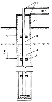 фундамента (на расстоянии 0,25 м от его поверхности) солями хлористого калия и