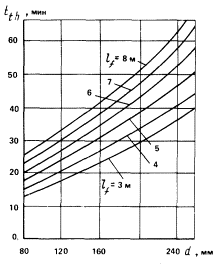 Далее по графику на рис. 28 при η = 0,52 принимаем υ = 1,3 и вычисляем требуемую толщину теплоизоляции по формуле (20)