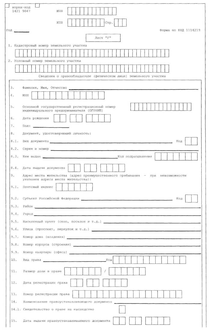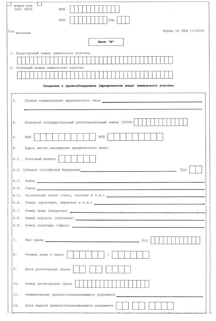 Приказ Минфина РФ от 1 июня 2006 г. N 86н О внесении изменений в приказ Министерства финансов Российской Федерации от 7 сентября 2005 г. N 112н "Об утверждении формы "Сведения о земельных участках, а также о лицах, на которых зарегистрировано право собственности, право постоянного (бессрочного) пользования или право пожизненного наследуемого владения" и Рекомендаций по ее заполнению В целях уточнения формы "Сведения о земельных участках, а также о лицах, на которых зарегистрировано право собственности, право постоянного (бессрочного) пользования или право пожизненного наследуемого владения" приказываю: Внести в приказ Министерства финансов Российской Федерации от 7 сентября 2005 г. N 112н "Об утверждении формы "Сведения о земельных участках, а также о лицах, на которых зарегистрировано право собственности, право постоянного (бессрочного) пользования или право пожизненного наследуемого владения" и Рекомендаций по ее заполнению" (зарегистрирован в Министерстве юстиции Российской Федерации 5 октября 2005 г., регистрационный номер 7056; "Бюллетень нормативных актов федеральных органов исполнительной власти", N 41, 10 октября 2005 г.; "Российская газета", N 227, 11 октября 2005 г.) следующие изменения: 1) в Приложении N 1 Лист "В" "Сведения о правообладателе (юридическом лице) земельного участка" и Лист "Г" "Сведения о правообладателе (физическом лице) земельного участка" изложить в новой редакции согласно приложению N 1 к настоящему приказу; 2) абзац третий пункта 4.6 Раздела IV. Заполнение Листа "В" "Сведения о правообладателе (юридическом лице) земельного участка" Приложения N 2 изложить в следующей редакции: "по строке 8 указывается размер доли в праве на земельный участок в виде правильной простой дроби (например, 000087/000965);".