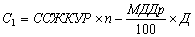 где: C1 - размер субсидии (в рублях); ССЖКУР - размер установленного для муниципального образования регионального стандарта стоимости жилищно-коммунальных услуг на на одного члена семьи для семей разной численности (в рублях); n - количество лиц, входящих в состав семьи заявителя, определяемых в соответствии с пунктом 18 настоящих Правил; МДДР - региональный стандарт максимально допустимой доли расходов граждан на оплату жилого помещения и коммунальных услуг в совокупном доходе семьи (в процентах); Д - совокупный доход семьи (в рублях), исчисленный в порядке, установленном пунктом 40 настоящих Правил. 24. При среднедушевом доходе семьи ниже прожиточного минимума, установленного органами государственной власти субъекта Российской Федерации в соответствии с законодательством Российской Федерации, размер субсидии определяется по формуле:
