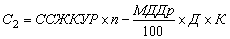 где: С2 - размер субсидии (в рублях); К - поправочный коэффициент, рассчитанный по формуле: