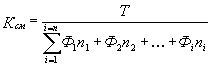 На отдельных рабочих местах (прецизионная механическая обработка, точные слесарные работы и т.п.) нормы освещенности следует увеличить на одну ступень по табл.1 СНиП II-4-79. 13. КОЭФФИЦИЕНТЫ ИСПОЛЬЗОВАНИЯ, МНОГОСТАНОЧНОГО ОБСЛУЖИВАНИЯ И СМЕННОСТИ ОБОРУДОВАНИЯ13.1. Коэффициент использования оборудования определяется отношением расчетного числа единиц технологического оборудования к фактически принятому: