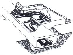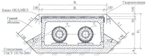 В карте приведена технология монтажа внутриквартального теплопровода в непроходном канале, представлены схемы механизации, освещены вопросы качества работ, безопасности и охраны труда, экологической и пожарной безопасности работ, приведены указания по организации рабочего места, дана потребность в материально-технических ресурсах, приведены технико-экономические показатели. Карта предназначена для мастеров и прорабов строительных организаций и может включаться в проект производства работ в качестве технологического документа. Настоящая карта разработана сотрудниками ОАО ПКТИпромстрой и ООО «Тектоплан»: Савина О.А. - исполнитель, компьютерная обработка и графика; Черных В.В. - технологическое сопровождение разработки; Бычковский Б.И. - разработка технологической карты, нормоконтроль и корректура разработки; Колобов А.В. - общее техническое руководство разработкой технологических карт; к.т.н. Едличка С.Ю. - общее руководство разработкой технологической документации; к.т.н. Фельдман В.Д. -методическое руководство, нормоконтроль. Авторы будут признательны за предложения и возможные замечания по составу и содержанию настоящей карты. Содержание 1 ОБЩИЕ ДАННЫЕ1.1 Технологической картой предусматривается монтаж внутриквартальных сетей тепловодоснабжения из изолированных подающих и обратных стальных трубопроводов отопления (температура до 130 ºС) и горячего водоснабжения (температура до 90 ºС) диаметром от 108 до 1420 мм, работающих при давлении до 1,6 МПа, прокладываемых в непроходном канале. 1.2 Технологическая карта, входящая в состав ППР, предназначена для инженерно-технического персонала (прорабов, мастеров) и рабочих строительных организаций, занятых на монтаже теплопровода в непроходном канале, сотрудников технадзора заказчика, осуществляющих надзорные функции за технологией и качеством выполнения работ, а также инженерно-технических работников строительных и проектно-технологических организаций. 1.3 При привязке технологической карты к объекту строительства необходимо учитывать требования СНиП 41-02-2003 «Тепловые сети», СНиП 41-03-2003 «Тепловая изоляция оборудования и трубопроводов», СНиП 3.05.03-85 «Тепловые сети», а также ПБ 10-573-03 «Правила устройства и безопасной эксплуатации трубопроводов пара и горячей воды». 1.4 Привязка технологической карты к местным условиям строительства состоит в уточнении объемов работ, средств механизации и потребности в трудовых и материально-технических ресурсах, калькуляции и календарного плана производства работ. 2 ОРГАНИЗАЦИЯ И ТЕХНОЛОГИЯ ВЫПОЛНЕНИЯ РАБОТ2.1 Непроходные каналы для 2-х и 5-трубной прокладки систем тепловодоснабжения представляют собой подземный железобетонный канал в грунте, в котором размещается система изолированных трубопроводов, закрытый сверху железобетонными элементами и герметизированный цементной стяжкой и битумными мастиками. Прокладки в каналах выполняются в соответствии со СНиП 3.05.03-85 и СНиП 41-02-2003 «Тепловые сети». Пример двухтрубной прокладки теплопровода в непроходном канале представлен на рисунке 1, а типы каналов и их параметры в зависимости от диаметра прокладываемых теплопроводов даны в таблице 1. 2.2 Непроходные каналы не предусматривают нахождения в них людей даже для периодических осмотров. Каналы сверху и с торцов закрыты и герметизированы, в н