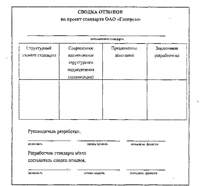 Г.1 Форма сводки отзывов приведена на рисунке Г.1.