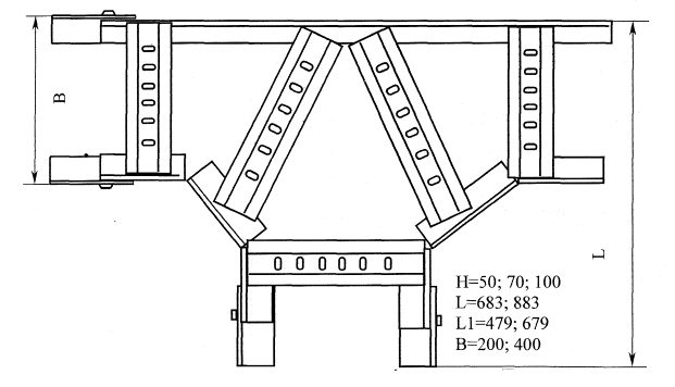 Примечание. Вид покрытия 1 является предварительным. Для обеспечения требуемых условий эксплуатации, после монтажа на лотки должны быть нанесены покрытия по указаниям рабочей документации систем автоматизации, по ГОСТ 9.401, либо по технологическим инструкциям монтажной организации. 1.3. Характеристики.1.3.1 Группа условий эксплуатации лотков в части воздействия механических факторов внешней среды - М2 по ГОСТ 17516. 1.3.2 Лотки предназначены для условий эксплуатации УХЛ1 по ГОСТ 9.104. Тип атмосферы - II по ГОСТ 15150. 1.3.3 Места соединения лотков должны обеспечивать надежную электрическую цепь заземления. В лотках должно быть обеспечено электрическое соединение крышки с корпусом, а также электрическое соединение металлических опор, служащих для установки лотка, с корпусом лотка. Заземление накладок, входящих в комплект крышек, необязательно. 1.3.4 Используемые материалы должны соответствовать действующим стандартам и техническим условиям на них. 1.3.5 Заусенцы и острые кромки не допускаются. 1.3.6 Сварные соединения не должны иметь прожогов, непроваров, а также вмятин, глубина которых превышает 10 % от суммарной толщины свариваемых листов. 1.3.7 Секции из одного размерного ряда по ширине и высоте (прямые, угловые, тройниковые и переходные) должны собираться между собой без дополнительной подгонки или правки. 1.3.8 Лакокрасочные покрытия должны быть не ниже класса V по ГОСТ 9.032. Толщина покрытий должна быть не менее указанной в рабочих чертежах. Допускаются изделия, покрытые только грунтом. Системы покрытий должны соответствовать требованиям ГОСТ 9.401. 1.3.9 Металлические покрытия поверхностей лотков (за исключением метизов) должны соответствовать требованиям на оцинкованный лист по ГОСТ 14918 1-й группы. Детали изделий из оцинкованного листа на срезах могут не защищаться. Защита от коррозии мест обрезки листов обеспечивается протекторным эффектом. Метизы для соединения лотков (болты, шайбы, гайки) должны иметь цинковые покрытия толщиной не менее 9 мКм. 1.3.10 Установленный срок службы лотков до замены - не менее 20 лет при условии применения типа покрытия в соответствии с условиями промышленной атмосферы и их восстановления по мере разрушения. Критерием предельного состояния является наличие ржавых пятен на поверхности деталей при глубине очагов коррозии более 0,2 мм. 1.4. Комплектность1.4.1 В комплект поставки входят: изделия (в наборе, определяемом потребителем) по таблице 1; В комплект прямой, угловой и тройниковой секций входит: прямая или угловая, или тройниковая секция; болты с гайками и шайбами оцинкованные - по 4 комплекта. В комплект крышки входит: крышка -1 шт.; зажим (для крепления крышки к корпусу секции) - 2 шт.; накладка (для закрытия стыка крышек) - 1 шт.; гайка М8 - 1 шт.; шайба -1 шт. В комплект соединителя переходного входит: соединительная планка - 1 шт.; направляющая планка - 1 шт.; болты с гайками и шайбами оцинкованные по 3 комплекта. В комплект накладки входит: накладка; зажим. В комплект угольника входит: угольник; болт - 3 шт., гайка - 3 шт., шайба - 6 шт. В комплект шарнира входят: шарнир; болт - 4 шт., гайка - 4 шт., шайба - 8 шт. Для изделий с лакокрасочными покрытиями болты должны комплектоваться зубчатыми шайбами. 1.5. Маркировка1.5.1 Секции лотков должны иметь маркировку, содержащую следующие данные: товарный знак завода-изготовителя; краткое обозначение лотка; дату