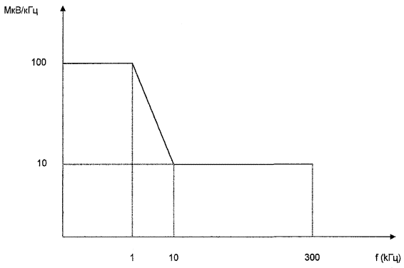 4.16.3 Несимметричное напряжение радиопомех 4.16.3.1 Несимметричное напряжение радиопомех на зажимах для подключения к сети электропитания оборудования АМТС, эксплуатируемого вне жилых домов, не должно превышать значений, указанных в таблице 4.17. 4.16.3.2 Несимметричное напряжение радиопомех на зажимах для подключения к сети электропитания оборудования АМТС, эксплуатируемого в жилых домах, не должно превышать значений, указанных в таблице 4.18. Таблица 4.17- Несимметричное напряжение радиопомех на зажимах для подключения к сети электропитания оборудования, эксплуатируемого вне жилых домов