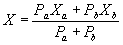 где Ра - масса нефтепродукта, имеющего запас качества по восстанавливаемому показателю, кг; Рв - масса некондиционного нефтепродукта, кг; А - массовая доля нефтепродукта (в смеси), имеющего запас качества по восстанавливаемому показателю, %; Х - значение показателя, которое нужно получить после смешения; Ха - значение показателя нефтепродукта, имеющего запас качества; Хв - значение показателя некондиционного нефтепродукта. Соотношение компонентов при исправлении фракционного состава топлива с достаточной для практических целей точностью определяется по формуле (2). 10.6.6 Вязкость и температуру вспышки в закрытом тигле смеси нефтепродуктов можно определить по формуле