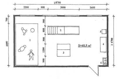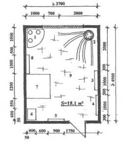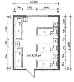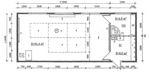 Рис. П. 13. Кабинет занятий ЛФК (на 5 человек) с раздевалкой и кладовой