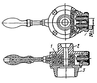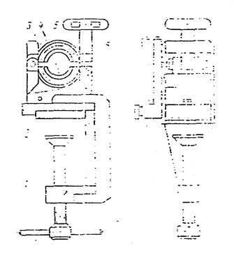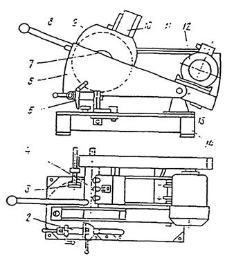 4.1.6. Трубы диаметром до 90 мм режут с помощью маятниковой пилы ПМ 300/80 (рис. 4.4), которую можно установить и закрепить на верстаке или столе. Конструкция тисков позволяет зажимать и резать трубы под углом 45…90 град. По отношению к абразивному армированному кругу. 4.1.7. В условиях монтажной площадки резку пластмассовых труб часто выполняют вручную ножовками или пилами. При резке ручными ножовками рекомендуется применять приспособления с направляющими для полотна перпендикулярно оси трубы. На рис. 4.5 показано устройство для резки пластмассовых труб наружным диаметром 20…22 мм с помощью ручной ножовки. Направляющий паз в стойке 7 позволяет обеспечить перпендикулярность реза относительно оси разрезаемой трубы. 4.1.8. Для ликвидации ручного труда при резке пластмассовых труб в монтажных условиях последнее время создано несколько моделей электроножовок. Их используют также вместе в мастерских на стационарных установках для резки торцов труб непосредственно перед сваркой и при изготовлении соединительных деталей. 4.1.9. Образование отверстий. Отверстия в пластмассовых трубах выполняют на сверлильных станках или ручными электрическими сверлилками с помощью перовых и спиральных сверл, а также специальных циркульных резцов и трубных сверл. 4.1.10. Для отверстий диаметром до 15 мм применяют перовые сверла. Угол заточки перовых сверл 60…70°, подача при сверлении отверстий в пластмассовых трубах 0,1…0,3 мм на один оборот. Для получения отверстий диаметром 15…50 мм используют стандартные спиральные сверла с углом заточки 100…130°. Для облегчения отвода стружки на сверлах рекомендуется выполнять двойную заточку, а винтовые канавки полировать. Диаметр сверла должен быть на 0,05…0,15 мм больше отверстия, так как оно после сверления уменьшается. 4.1.11. Отверстия диаметром свыше 50 мм вырезают циркульными резцами с передним углом заточки 50° или специальными трубными сверлами (рис.4.6), представляющими собой цилиндрическую фрезу. Трубное сверло - это полый цилиндр с зубьями и хвостовиком для закрепления в патроне станка. Высота и шаг зубьев 5…7 мм, угол заострения их 80…90°, чистота вращения до 3-1. За один оборот фреза режет стенку трубы на глубину 2…6 мм. Перед вырезкой отверстий пластмассовую трубу закрепляют в зажиме во избежание трещин и сколов. В процессе сверления труб сверло необходимо периодически выводить из отверстия для охлаждения и удаления стружки. Охлаждать инструмент и места сверления рекомендуется сжатым воздухом. Рис.4.2. Станок для резки пластмассовых труб диаметром до