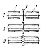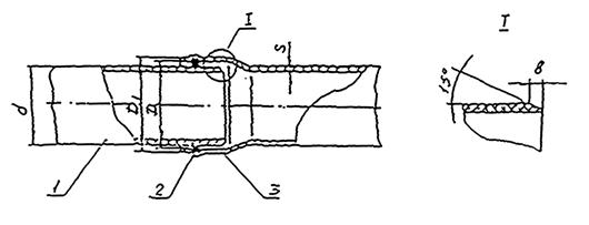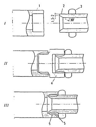 вставки на подготовительный торец трубы; д) сборка соединительного узла
