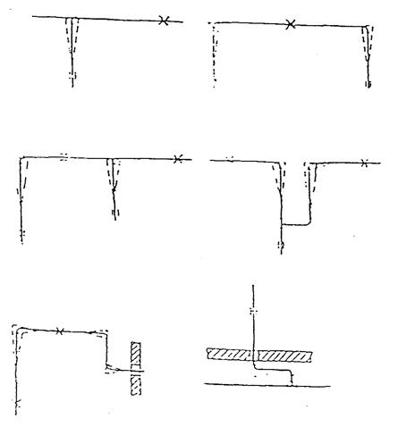 протяжных коробках: 8.5.13. При сооружении внутрицеховых пластмассовых трубопроводов в большинстве случаев используется самокомпенсация трубопроводов. Это достигается выбором рациональной схемы прокладки, правильным размещением так называемых "мертвых" точек, делящих трубопровод на такие участки, температурная деформация которых происходит независимо друг от друга и самокомпенсируется. При сооружении межцеховых трубопроводов компенсацию осуществляют только с помощью П-образных и лирообразных компенсаторов. Для полиолефиновых труб наружным диаметром до 50 мм допускается применять компенсационные петли, которые должны располагаться в вертикальной плоскости выпуклостью вниз. 8.5.14. При выборе расположения соединений принимают меры по их возможной разгрузке и повышению надежности трубопровода в целом, а также созданию условий эффективного монтажа и эксплуатации. К числу таких мер относятся следующие. Соединения, выполняемые на горизонтальных участках надземных трубопроводов, целесообразно размещать на расстоянии от отдельных опор и подвесок, равном 1/5-1/4 длины пролета. В этой зоне минимальны изгибающие напряжения, возникающие от массы транспортируемого вещества и самого трубопровода. Не допускается расположение сварных соединений от опор и подвесок на расстоянии менее 50 мм. В местах расположения разъемных соединений (например, на свободных фланцах) в сплошном основании должны быть предусмотрены разрывы. Величина разрывов выбирается из условия обеспечения свободных перемещений фланцев, движущихся совместно с трубопроводом в процессе компенсации температурных деформаций. На прямых вертикальных участках соединения располагают ближе к опорам. Такое расположение позволяет разгрузить узлы соединений от изгибающих усилий, возникающих в случае потери трубопроводом устойчивости при изменении температуры. В надземных прокладках узлы соединений, выполненных с помощью металлических соединительных деталей, должны иметь опоры, исключающие передачу нагрузки от их массы на пластмассовый трубопровод. Соединения должны располагаться в местах, где может быть обеспечено безопасное и производительное выполнение сварочных работ. По возможности соединения целесообразно размещать в местах, легко доступных для осмотра и ремонта при эксплуатации. Расположение соединений в футлярах (при пересечении строительных конструкций) не допускается. 8.6. Ремонт трубопроводов в процессе монтажных работ.8.6.1. Выявленные в процессе испытания смонтированного трубопровода дефекты требуют проведения соответствующих ремонтных работ - устранения течи в разъемных соединениях, замены неразъемных соединений, отдельных труб или участков трубопровода и др. 8.6.1. Течи в разъемных соединениях трубопровода ликвидируют общеизвестными методами - подтягиванием болтов, подвертыванием накидных гаек, заменой уплотнительной прокладки и т.д. Пластмассовые накидные гайки, снятые в процессе ремонтных работ с металлических деталей, применять вторично не допускается. 8.6.2. Дефектные сварные соединения, соединительные детали и поврежденные участки труб вырезают и заменяют новыми тех же размеров, используя соответствующие методы и оборудование, применяемые при монтажных работах. Устранение дефектов сварных соединений напорного трубопровода сварко
