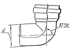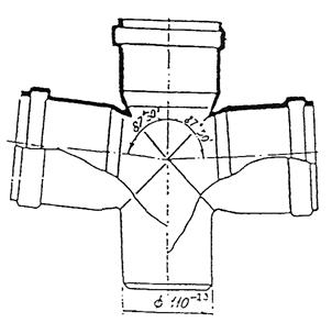 Для монтажа трубопроводов используются фасонные части (рис. 10.2…10.15), номенклатура и основные размеры которых представлены в табл. 10.4. и 10.5. Рис. 10.2. Отвод 87°30' Рис. 10.3. Отвод а=30°45' Рис. 10.4. Тройник 87°30' Рис.10.5. Тройник а=45° Рис. 10.6. Муфта надвижная Рис. 10.7. Патрубок компенсационный Рис. 10.8. Переход Рис.10.9. Крестовина 45° Рис. 10.10. Крестовина 87°30' Рис. 10.11. Крестовина двухплоскостная Рис. 10.12. Ревизия Рис. 10.13. Заглушка Рис. 10.14. Приборный патрубок Рис. 10.15. Отвод приборный Рис.. 16. Сборная конструкция раструба канализационных