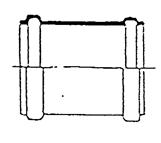 выполненные с использованием: 10.2.8. При склеивании канализационных трубных изделий из ПВХ с использованием раструбов с желобком резиновые кольца не устанавливают и клей на поверхность желобков не наносят. За длину нахлестки принимают всю длину раструба. Наличие не склеенной зоны (в желобке) между двумя склеенными лишь незначительно снижает прочность соединения. 10.2.9. Для создания упорных поверхностей, предназначенных для фиксации крепежных элементов, на трубу из ПВХ могут быть наклеены кольца, представляющие собой разрезанные вдоль оси патрубки длиной 10-12 мм из ПВХ того же диаметра, что и сама труба. Если необходимо обеспечить перемещение трубопровода только в одном направлении, достаточно наклеить кольцо с одной стороны (рис. 10.19.). Рис. 10.19. Наклеенное на трубу из ПВХ опорное кольцо для