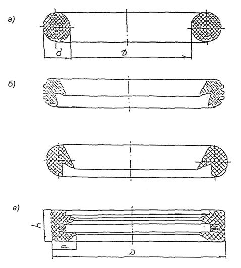 Трубы и фасонные части из ПНД и ПВД, температурные параметры эксплуатации которых аналогичны приведенным выше для ПВХ, уплотняются кольцами круглого поперечного сечения (ГОСТ 22689.0-89 - ГОСТ 22689.2-89), размеры которых представлены в табл. 10.8. Рис. 10.17. Конструкция резиновых колец, используемых для