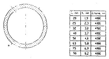 1.1.2. Пластмассы по типу полимерных соединений разделяют на термопластичные и термореактивные (термопласты и реактопласты). К первой группе - термопластов относятся пластмассы, которые при нагревании переходят в пластическое состояние и могут перерабатываться методом экструзии (в трубы) и методом литья под давлением (в соединительные и фасонные детали). После переработки в изделия свойства термопластов не изменяются. Они могут быть подвергнуты вторичной переработке аналогичными методами. Ко второй группе - реактопластам относятся пластмассы, которые в процессе формования в изделие отверждаются и в отличие от термопластов теряют способность к повторному формованию. Обычно реактопласты в чистом виде не применяются, а используются в качестве компонентов композитных материалов в сочетании со стеклянными углеродными, полимерными и другими волокнами. Наиболее широко используемыми для изготовления стеклопластиковых труб отверждающимися полимерными материалами являются эпоксидная и полиэфирная смолы. 1.1.3. Характеристика основных полимерных материалов, применяемых для изготовления труб и соединительных деталей, приведена в табл. 1.2. 1.2. Трубы и соединительные детали1.2.1. Пластмассовые трубы можно классифицировать по следующим характерным признакам: по полимерному материалу, которым определяются свойства трубопроводов и оптимальные условия эксплуатации (см. пункт 1.1); по способу производства (метод непрерывной экструзии и литья под давлением при переработке термопластов, методами намотки и центробежного формования при изготовлении изделий из стеклопластиков); по минимальному внутреннему давлению PN, минимальной длительной прочности MRS и жесткости SN; по конструкции труб: с гладкой или гофрированной стенкой, однослойные и многослойные, армированные, из разнородных материалов, с гладким или раструбным концом. 1.2.2. Номинальное внутреннее давление PN, минимальная длительная прочность MRS и жесткость SN для пластмассовых труб нормализованы международным стандартом ГОСТ 29324-92 (ISO 161/1-96) «Трубы из термопластов. Номинальные наружные диаметры и номинальное давление». За основу нормализации принят наружный диаметр, который при изменении толщины стенки остается постоянным, а внутренний диаметр изменяется соответственно. Полный ряд наружных диаметров пластмассовых труб (в мм) следующий: 10; 12; 16; 20; 25; 32; 40; 50; 63; 75; 90; 110; 125; 140; 160; 180; 200; 225; 250; 280; 315; 355; 400; 450; 500; 560; 630; 710; 800; 900; 1000 и 1200. В зависимости от номинального рабочего давления трубы подразделяются на типы, приведенные в табл. 1.3. Они характеризуются соответствующим значением толщины стенки, обеспечивающей прочностные характеристики трубопроводов. Показатель наименьшего требуемого сопротивления (допускаемого напряжения) или минимальной длительной прочности MRS (Minimum Required Strength) является определяющим критерием полимерных материалов, предназначенных для изготовления напорных труб. Классификация по MRS основана на следующих международных стандартах: ISO 9080 «Трубы из термопластов. Метод экстраполяции данных по стойкости к внутреннему давлению для определения длительной прочности термопластов для изготовления труб»; ISO 12162 «Термопласты для труб и соединительных деталей для напорных трубопроводов. Классификация и обозначения. Общие коэффициенты запаса прочности». В России новая класси