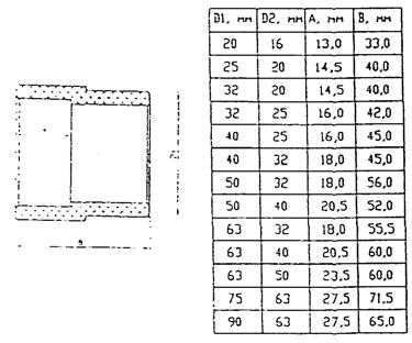 уплотнения раструбных соединений труб и фасонных частей: В целом раструбные соединения, при монтаже которых полностью выполняются требуемые технологические операции, отличаются достаточной степенью эксплуатационной надежности. Однако, как показал опыт монтажа канализационных трубопроводов диаметром 110 мм из ПВХ, ПНД и ПВД, при сборке таких соединений кольцо круглого поперечного сечения под действием сил трения иногда может неравномерно скручиваться и выталкиваться из желобка в раструбную щель между двумя соединяемыми деталями, что приводит к нарушению герметичности стыка при эксплуатации. Эффект скручивания резиновых колец проявляется чаще всего при отношении d/D<0,07 (где d и D - соответственно диаметр сечения и внутренний диаметр кольца). Для используемых с трубами из ПВХ, ПНД и ПВД колец круглого поперечного сечения диаметром 110 мм отношение d/D (в зависимости от величины допусков на размеры) составляет 0,063 - 0,068, что свидетельствует о некоторых конструктивных недостатках уплотнителей. Отношение d/D для колец диаметром 50 мм круглого сечения находится в пределах 0,12-0,13, вследствие чего при монтаже раструбных соединений труб и фасонных частей из ПВХ, ПНД и ПВД диаметром 50 мм выталкивание колец, как правило, не происходит. Точное выполнение технологических требований сборки раструбных соединений канализационных трубопроводов (наличие фаски на гладком конце трубы, предварительная очистка поверхности изделий, обязательное нанесение смазки, соосная сборка с последующим контрольным проворотом соединенных деталей относительно друг друга) позволяет избегать получения некачественных соединений. Опыт применения резиновых колец более сложного профиля поперечного сечения, так называемых, колец манжетного типа (рис. 10.17 б, в), свидетельствует об отсутствии их выталкивания при сборке раструбных соединений. Манжетные кольца имеют на внутренней поверхности один или два клиновидных выступа («язычка») с небольшой толщиной уплотнительной кромки, благодаря чему достигается уменьшение трения при вводе гладкого конца одной трубы в раструб другой. Для таких колец характерна большая, чем для уплотнителей круглого поперечного сечения того же типоразмера, абсолютная величина деформации, что способствует повышению надежности соединений. Для двухъязычковой конструкции колец манжетного типа предусматривается установка пластмассового распорного вкладыша (см. рис. 10.17в), позволяющего дополнительно фиксировать положение уплотнителя в желобе раструба при сборке соединения. Такими кольцами, изготовляемыми по DIN 4060 фирмами «M.O.L» и «Bode» (Германия) и отечественным ТУ 4926-005-41989945-97, комплектуются канализационные трубные изделия из ПП производства ЗАО НПО «Стройполимер» (трубы, патрубки и фасонные части) и ООО «Синикон» (трубы), предназначенные для пропуска постоянных стоков с температурой до 80°С и кратковременных - до 95°С (табл.10.9.) Табл. 10.9.Размеры, мм, колец манжетного типа с распорными вкладышами, предназначенных для уплотнения раструбных соединений труб и фасонных частей из ПП (см. рис.10.17в)